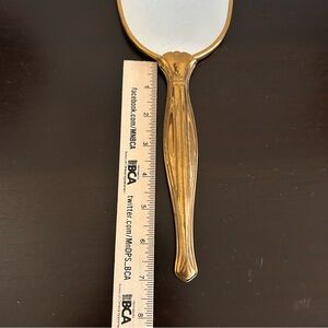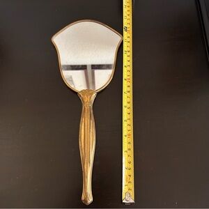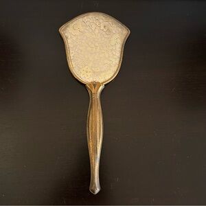 Vintage Lace Back Hand Mirror Brass French Boudoir Vanity Mirror Art Deco 13”