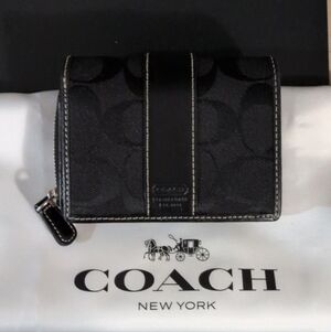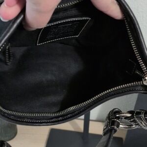 Looking for your authentic vintage Y2K Coach dream bag? Look no further! (Be sure to click See More for all details). This black classic Coach Hobo in signature "C" jacquard has the classic contrast stitching, with the braided leather adjustable shoulder strap and silver ring accents ending in the Coach buckle we all love on each side. The original hangtag is intact. The set includes the matching wallet which has a bill slot, several card slots, a dedicated coin pouch and ID window on the back. It ALSO will come with a Coach dust bag. You may find similar bags here but very few with all pieces I have included. (Note, Coach Cherry Charm is a styling prop and is NOT included).