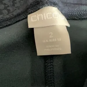 -Skinny fit; fitted through hips to leg opening; faux front pockets; waist is 32” and inseam is 22” with an 11” rise. Super cute! I took the tags off but have not worn these. Chico’s size 2 which is 12 in regular sizing.