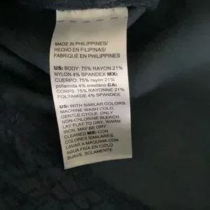 -75% rayon, 21% Tactelnylon, 4% spandex. Machine wash.