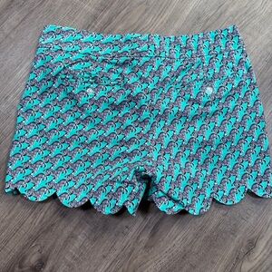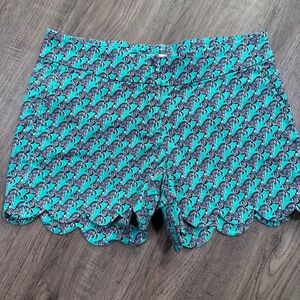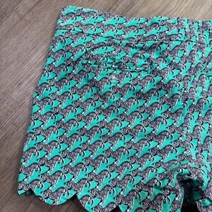 Crown & Ivy vibrant teal shorts with zebra pattern.