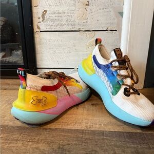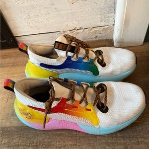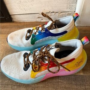 Dynamic sneakers with a vibrant color palette. Features include a mix of white, blue, yellow, red, and green accents. Super comfortable and will catch everyone’s eye✨ LGBTQ celebration sneaker Women’s size 8