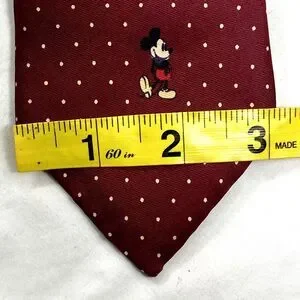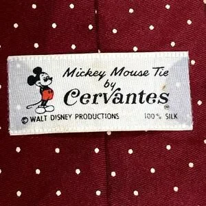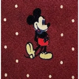 Mickey Mouse Cervantes Vtg Tie Disney World Maroon Red Repp Weave Polka Dots Y2K