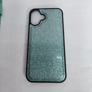 iPhone 16 Plus Turquoise Glitter Phone Case With Detachable Wallet Card Holder