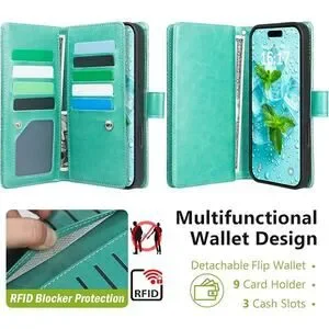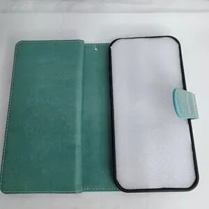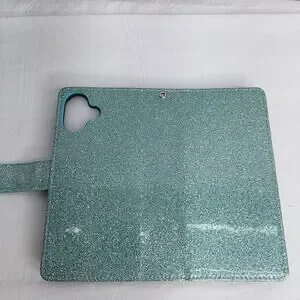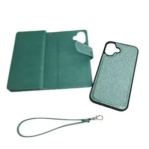 iPhone 16 Plus Turquoise Glitter Phone Case with Detachable Wallet with Card Holder