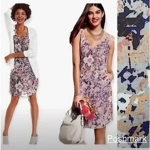 Cabi Fresco Shift Mini Slip Dress Women’s MEDIUM Purple Orange V-Neck