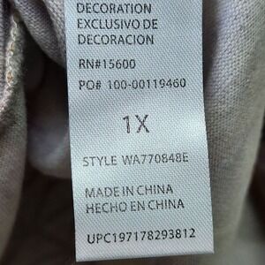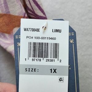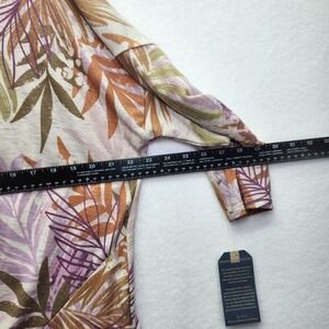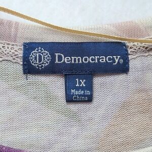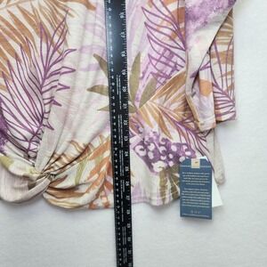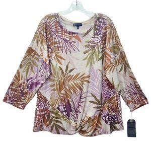 Democracy Top Womens 1X Tropical Palm Leaf 3/4 Sleeve Knit Twist Front Plus Size