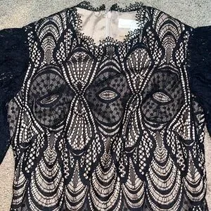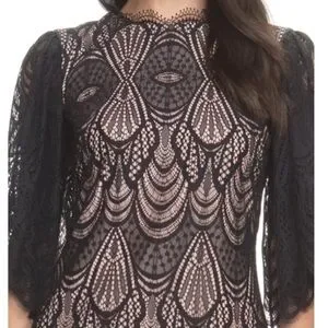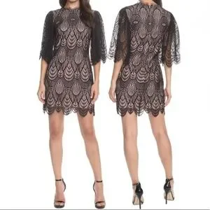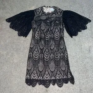 Dress the Population Toni Angel Bell Sleeve Sheer Overlay Sheath Pencil Bodycon Black Dress XXS. Extra Extra Small = 0-2. A host of heavenly details define this lace-covered dress, from the flowing angel sleeves to the scalloped finishes nipping the neck and hemlines. Hidden back-zip closure. Jewel neck. Elbow-length sleeves. Lined. 51% nylon, 49% cotton. Approx measurements: 16“ pit to pit, 14“ waist, & 33.5“ length. Brand new condition. No stains/flaws. Smoke/pet free home. Offers welcome. Bundle & save. Ship same/next day. Packaged w/ care.