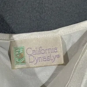VTG California Dynasty Women L White Satin Floral Nightgown Slip Dress Lace Trim