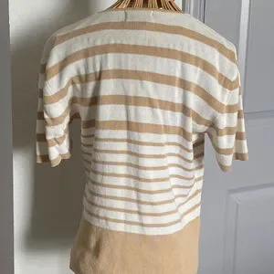 Women's STUDIO Tan Cream Striped Short Sleeve Cardigan M