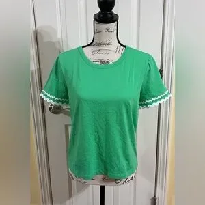 NWOT- Lilly Pulitzer Green Clairmont Ric Rac Trimmed Knit Top