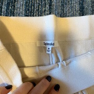 Chic white pants and top set. Comfortable and stylish. Perfect for casual outings.