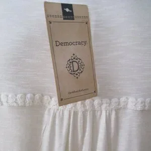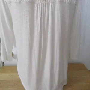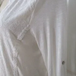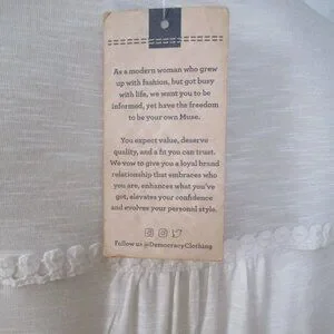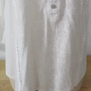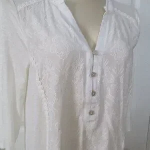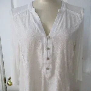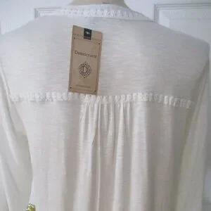 Democracy NWT White Embroidered Roll Tab Sleeves Relaxed Fit Blouse Size M
