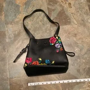 Betsey Johnson black and multi floral embroidered bag