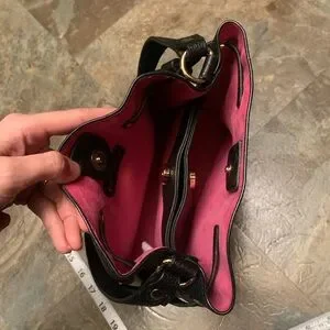 Betsey Johnson black floral embroidered bag. In great lightly used condition. Material resembles leather but is not.