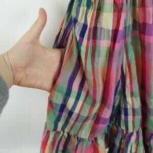 Pilcro Short Sleeve Mini Babydoll Dress Large Anthropologie Plaid Cowgirl Preppy