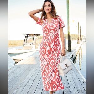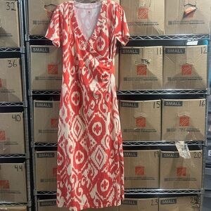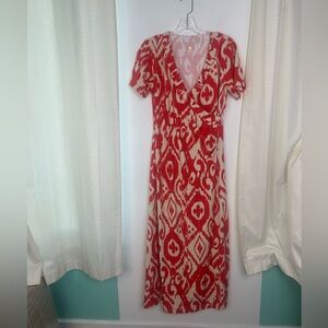 Spartina 449 Junetta Richmond Hill Ikat Orange Boho Midi Dress Size Small