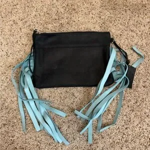 Fringe Hill Distressed Clutch Black/Turquoise