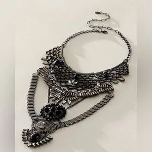 Free People Only Dreaming Statement Collar Necklace Hematite & Jet NWOT $88