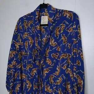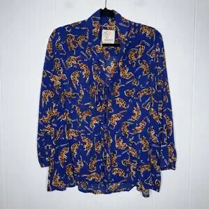 Conversations By Anthropologie Women’s Tiger Print Top Blue Size 12
