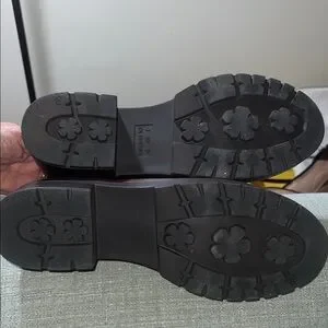 Tall chestnut brown riding boots with side zip. Elasticated back panel for a close fit. Low block heel and treaded sole. Smooth leather-look finish with ankle strap detail.