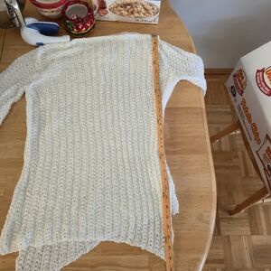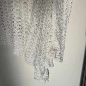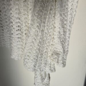 Unbranded Sz M/L White Open Knit Waterfall Cardigan Coastal Boho Ethereal Layer