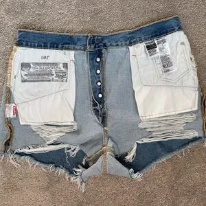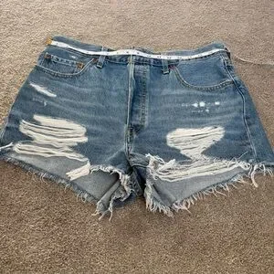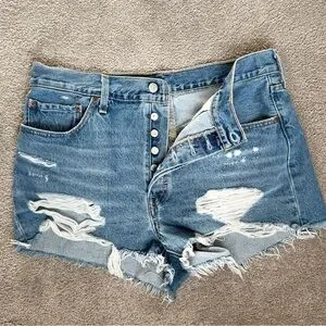 Levi’s 501 Button Fly High-Rise Denim Short W34 Light Wash Distressed Festival