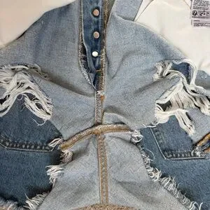 Condition: Pre‑owned in great condition with intentional factory distressing and frayed hem.