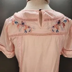 A dip of Darling Women's Dress Floral Embroidered Pink Medium Delicate Feminine