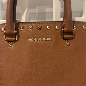 Michael Kors Selma luggage brown color Studded handbag / crossbody
