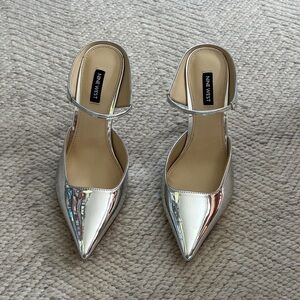 Nine West Metallic Silver Slingback Pointed Toe Mule Heels Size 9 NWOB