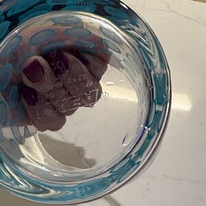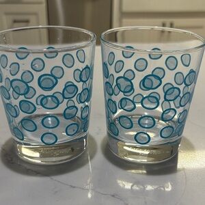 Set of two IKEA glass tumblers. Features blue circular patterns. Perfect for any dining setting.set of 2