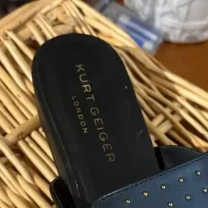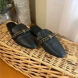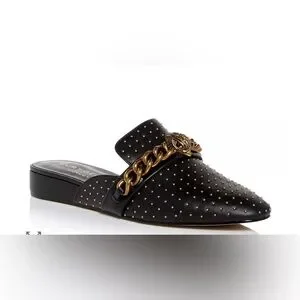 Kurt Geiger Black Leather Studded Slip-On Mule with Gold Chain