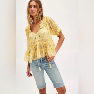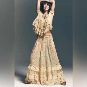 NWOT Free People Morning Mist Maxi Skirt Set- Sweet Yellow Combo