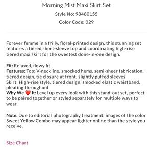 Forever femme in a frilly, floral-printed design, this stunning set features a tiered short-sleeve top and coordinating high-rise tiered maxi skirt for the sweetest done-in-one design.