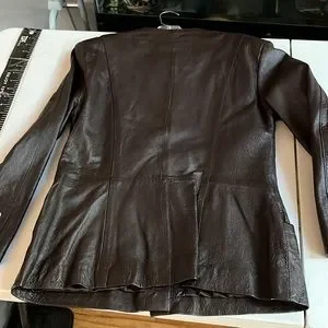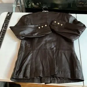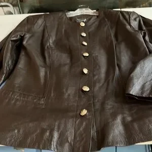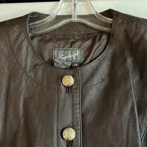 Spiegal size 14 dark brown genuine leather vintage jacket gold buttons never worn