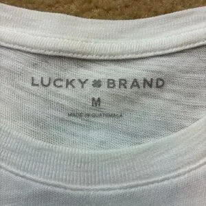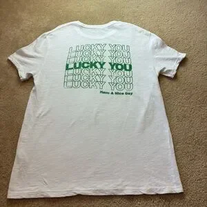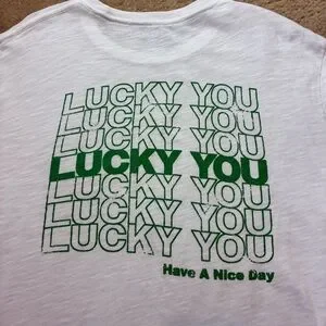 Lucky Brand White Tee with Green 'Lucky You' Chest Graphic