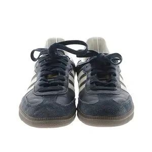 Classic Adidas Samba shoes in dark blue with cream accents. Ideal for everyday style. Never worn.