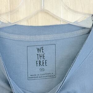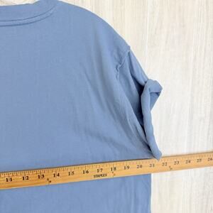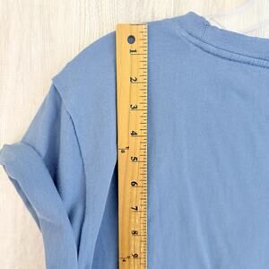 We The Free People Tee Shirt Women XL Blue Cropped Boxy Rolled Sleeve Raw Hem