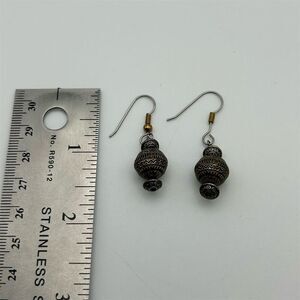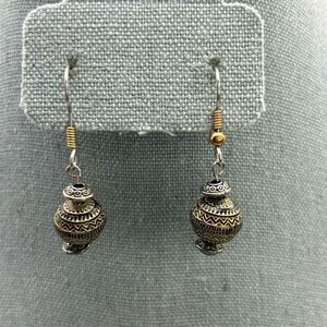 Boho Silver & Gold Tone Ball Dangle Pierced Earrings Lightweight Intricate Design