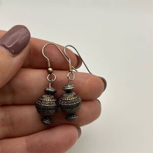 Boho Silver & Gold Tone Ball Dangle Earrings Lightweight Intricate Design