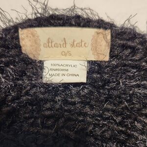 Plush fuzzy knit scarf with soft texture. Solid black hue for versatile wear. Cozy addition to cool-weather outfits.