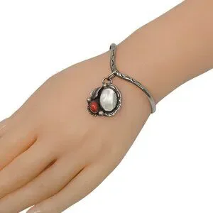 Native American Silver V Cuff Bracelet With Dangle #19878