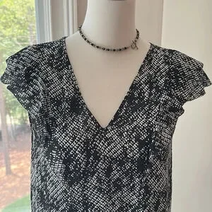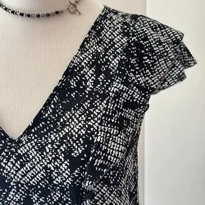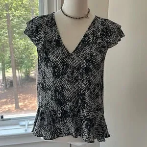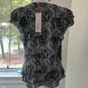 Parker Ruffle Sleeveless Black & White Blouse, Size Small, NWT