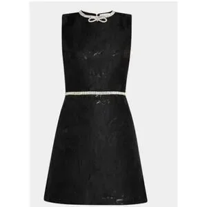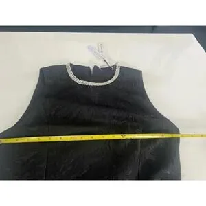 The product is a $695 Alice + Olivia Ellis Embellished Mini Black Sleeveless Dress in size 10. It features a patterned design, crewneck neckline, and a zip closure. Made of polyester, this short dress is perfect for casual occasions. The brand Alice + Olivia is known for its stylish and trendy designs, making this dress a great choice for women looking for a chic and fashionable addition to their wardrobe.