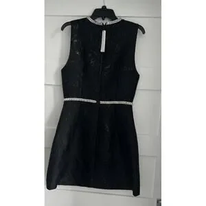 $695 Alice + Olivia Ellis Embellished Mini Black Sleeveless Dress Size 10