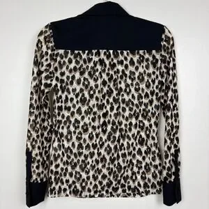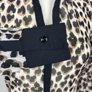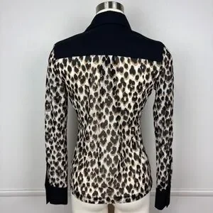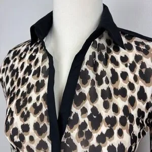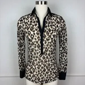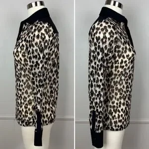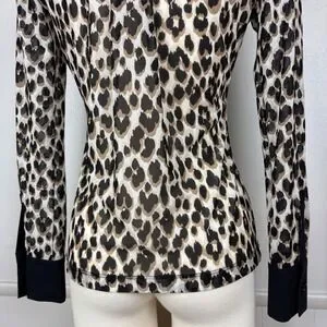 Anatomie Gem Mesh Leopard Print Blouse Size S Collar Long Sleeves Y-Neck Travel