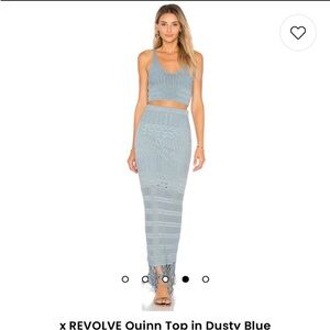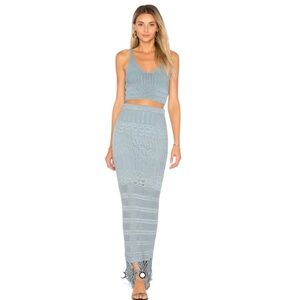 House of Harlow 1960 X Revolve Dusty Blue Crochet Maxi Skirt Set NWOT