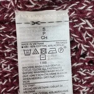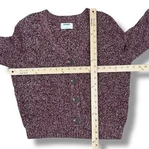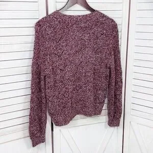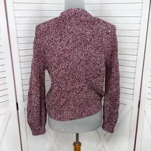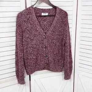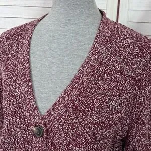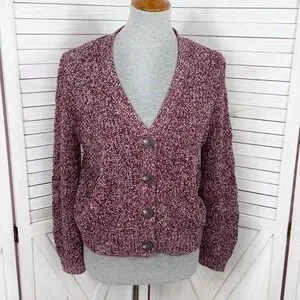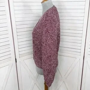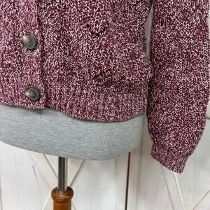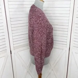 Old Navy Marled Pointelle Knit V Neck Crop Cardigan Sweater Burgundy Red Small