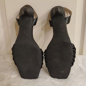 Halston Hong Kong Black Sling Back Strappy Square Toe Kitten Heel Sandals 9